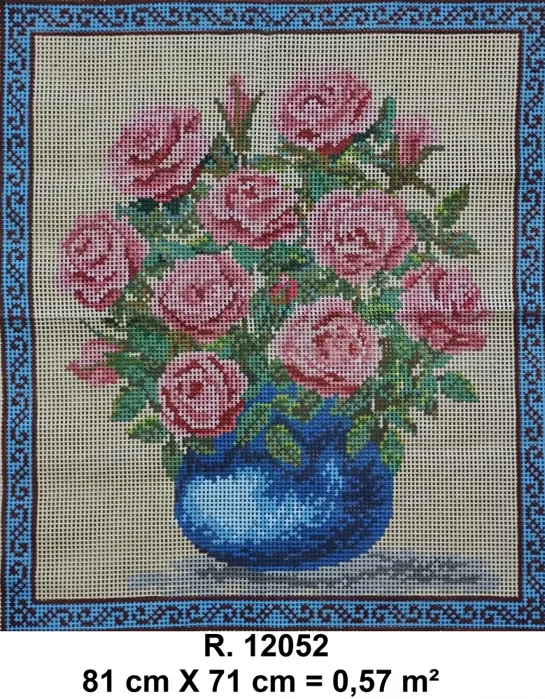 Tela talagarça pintada à mão, com pontos contados ímpares.