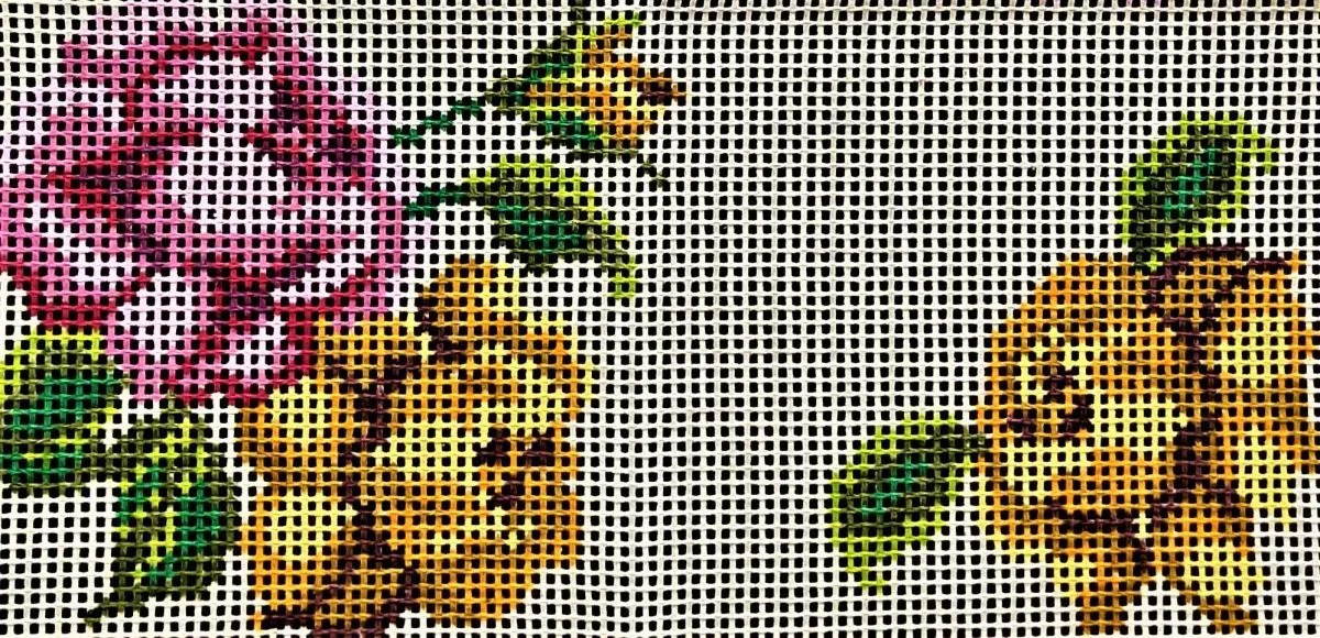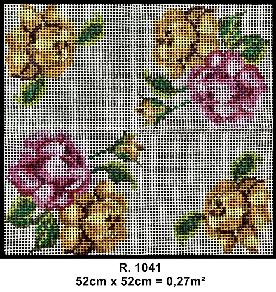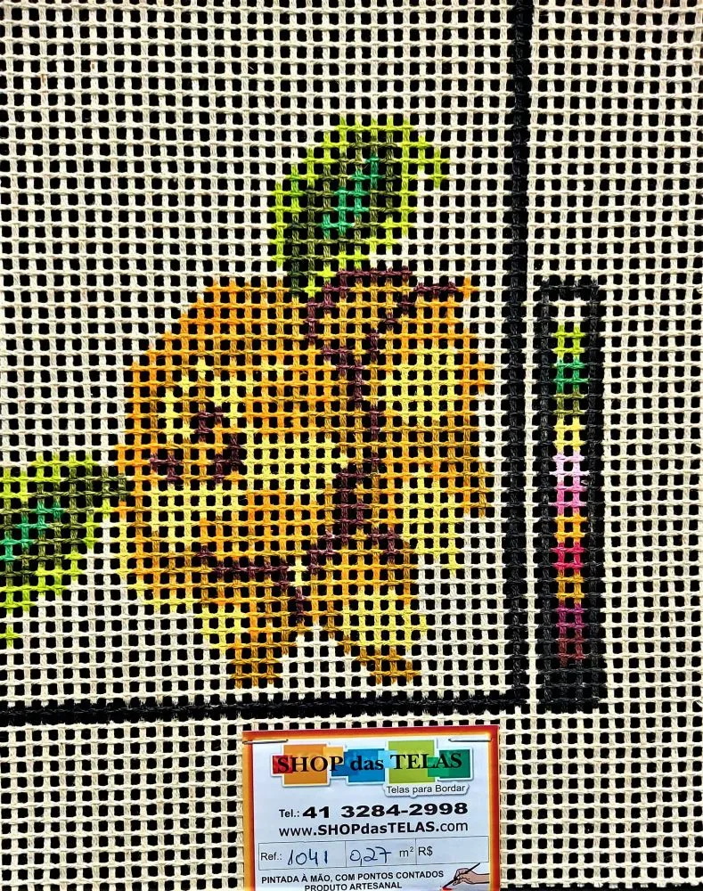 Tela talagarça pintada à mão, com pontos contados ímpares.