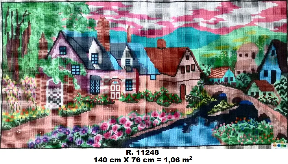 Tela talagarça pintada à mão, com pontos contados ímpares.