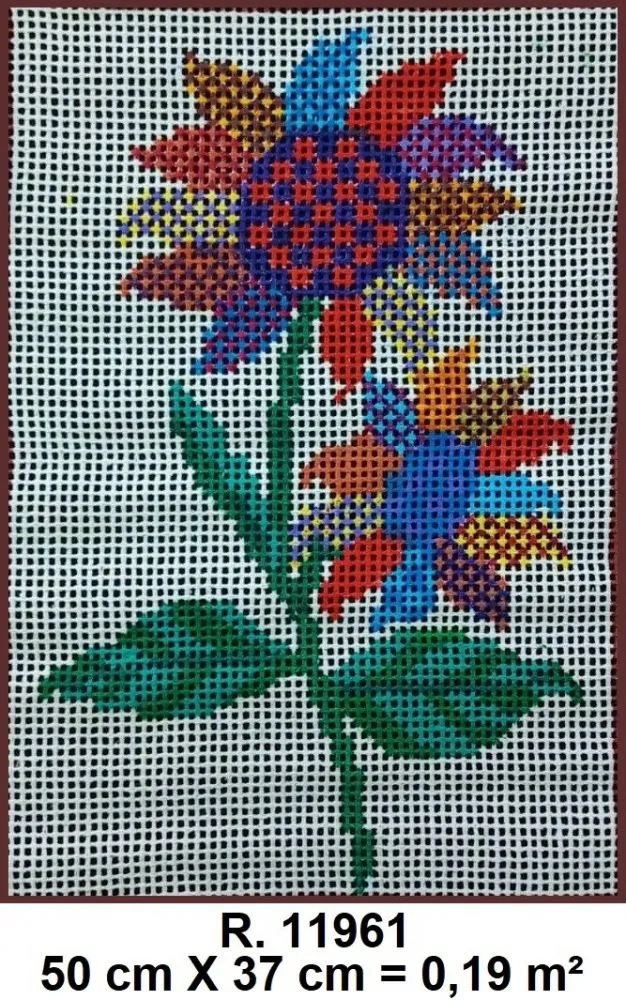 Tela talagarça pintada à mão, com pontos contados ímpares.