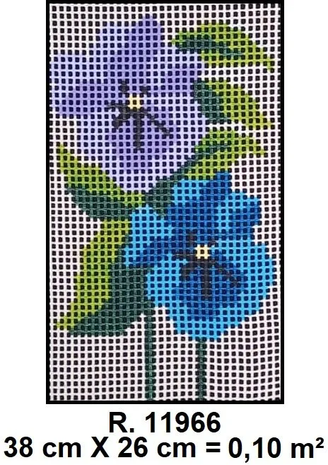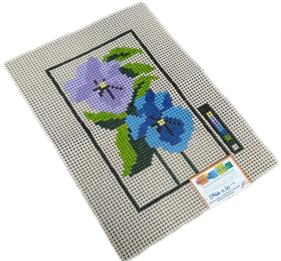 Tela talagarça pintada à mão, com pontos contados ímpares. Quadro, Floral.