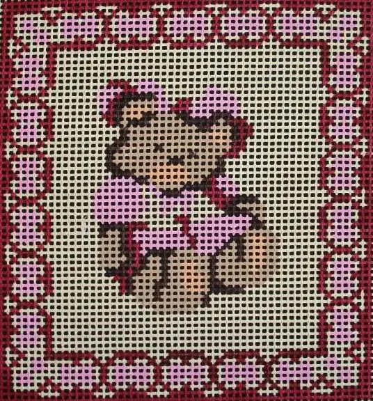 Tela talagarça pintada à mão, com pontos contados ímpares. Ursinha