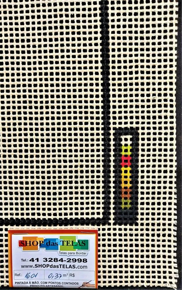 Tela talagarça pintada à mão, com pontos contados ímpares.
