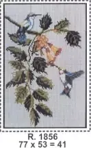 Tela talagarça pintada à mão, com pontos contados ímpares. Quadro, Pássaros, Beija-Flor.
