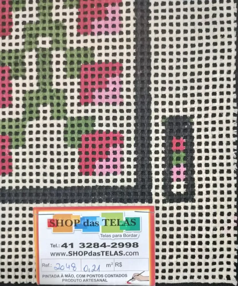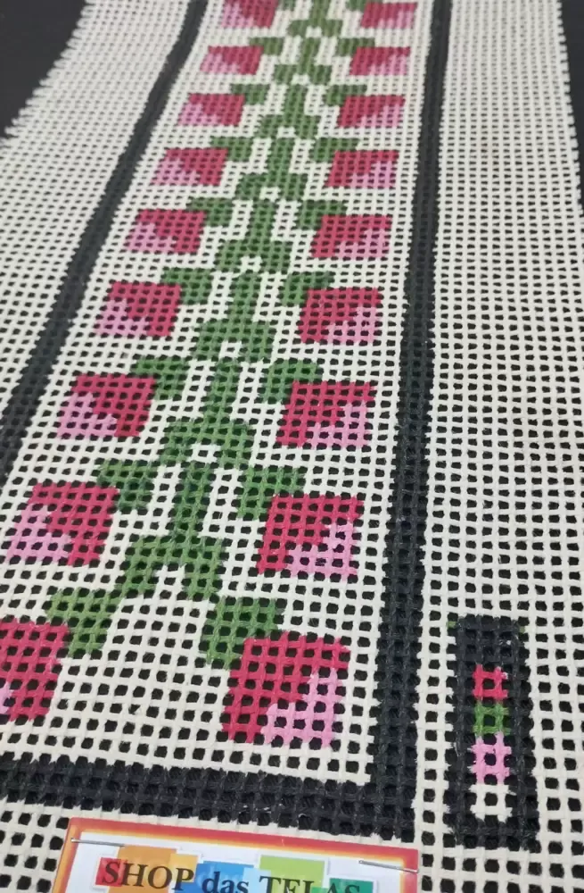 Tela talagarça pintada à mão, com pontos contados pares.