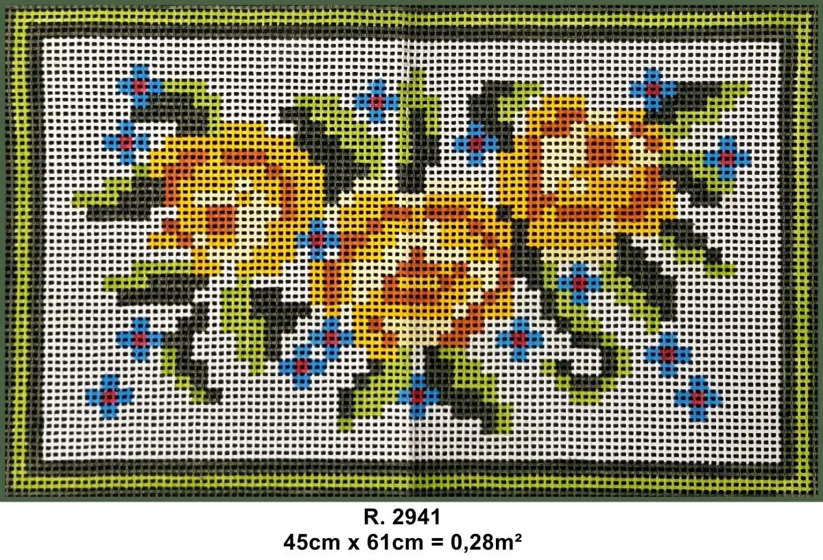Tela talagarça pintada à mão, com pontos contados pares. Floral, Rosas Amarelas.