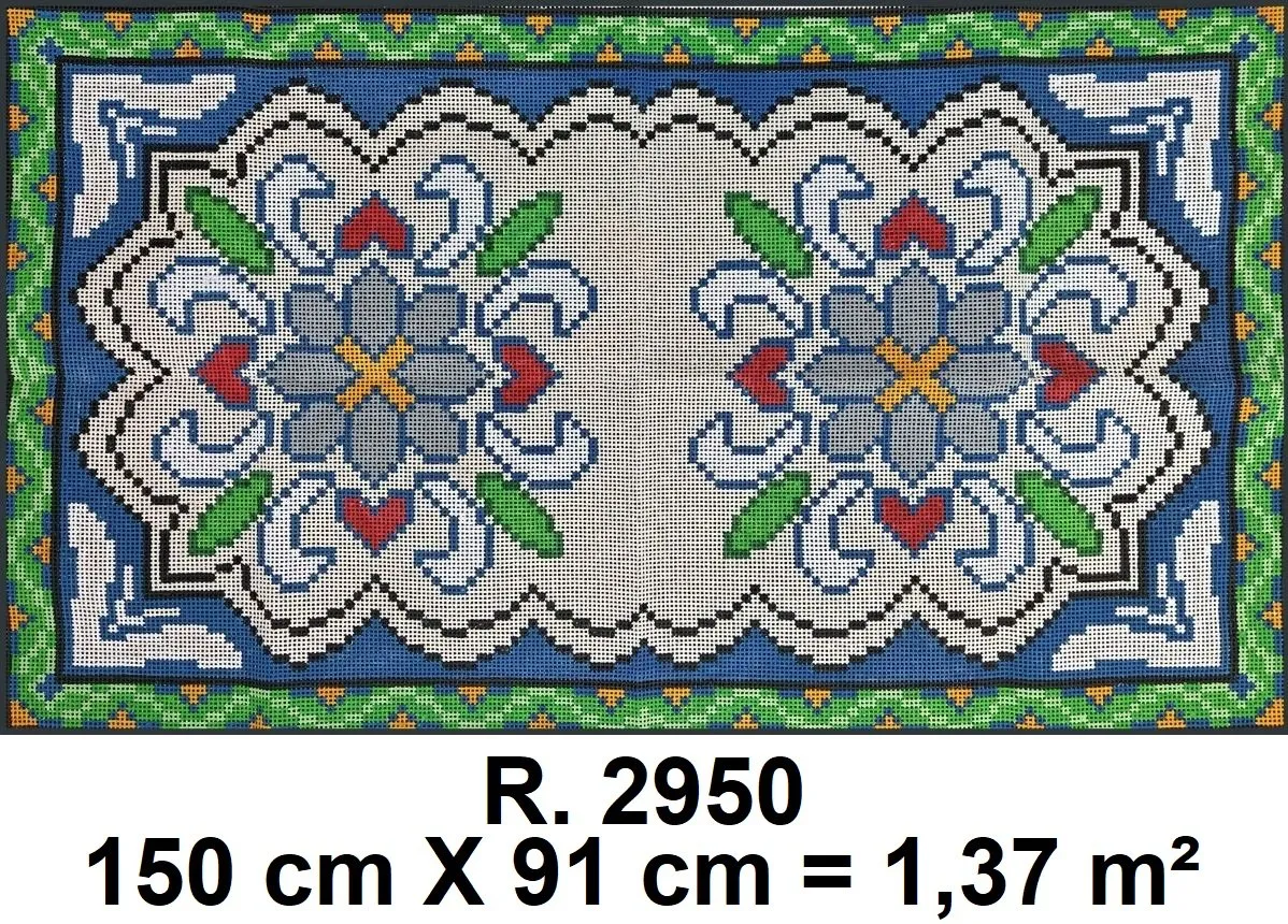 Tela talagarça pintada à mão, com pontos contados pares.