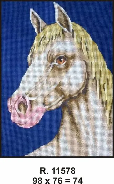 Tela talagarça pintada à mão, com pontos contados ímpares. Quadro, Animais, Cavalo, Palomino.