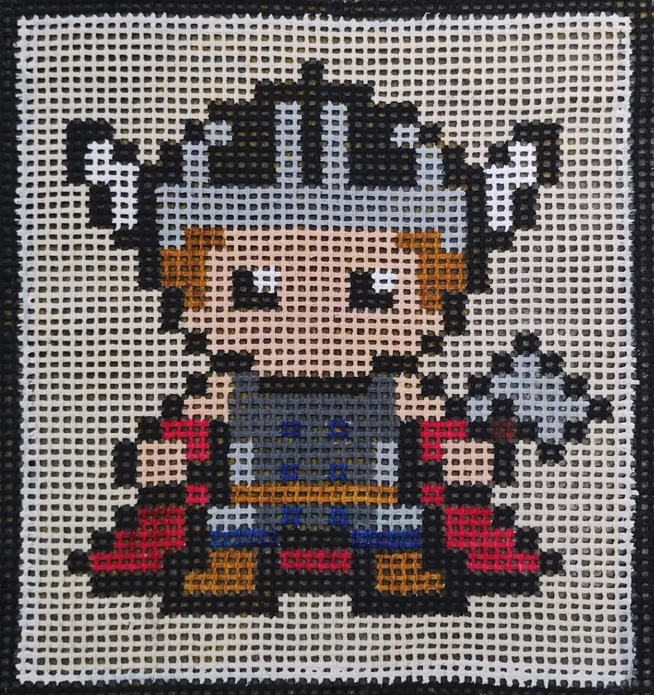 Tela talagarça pintada à mão, com pontos contados pares. Mulher Maravilha.